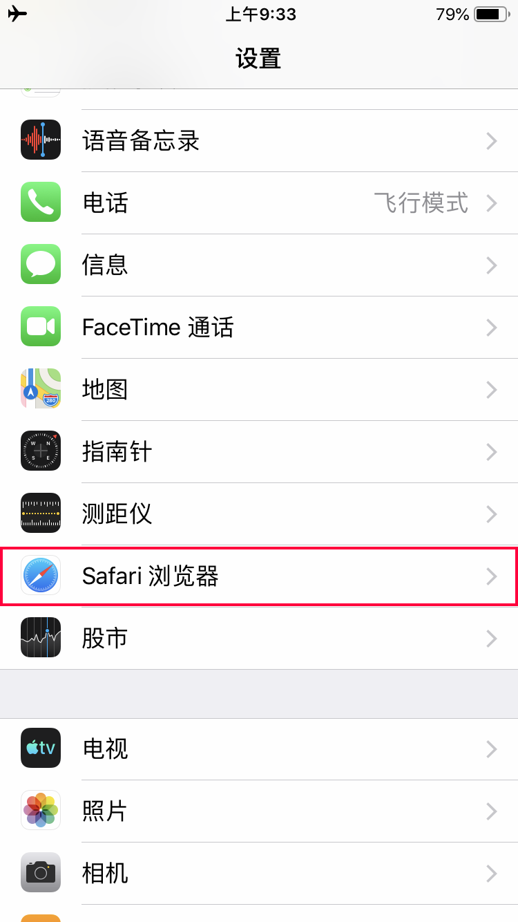 进入 设置 下滑找到 Safari浏览器 点击进入